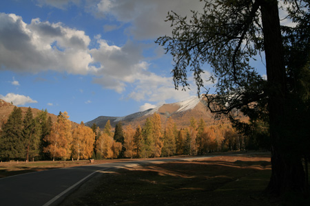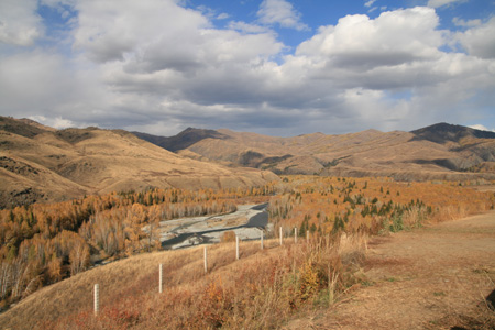 游客在白哈巴必去的景點是界碑界河,那是中國與哈薩克斯坦的交界處。界碑并沒有什么希奇,倒是邊界景色相當(dāng)不錯。源于冰川融雪的河水因為地質(zhì)的關(guān)系呈現(xiàn)出少見的白色,界河兩旁是漫山遍野的白樺林,在陽光的照射下燦爛悅目,透出濃濃的秋意。這里還能看到西北第一哨,并沒有想象中神秘,據(jù)說不允許拍照,可是遠遠拍上幾張又能被誰逮到?
